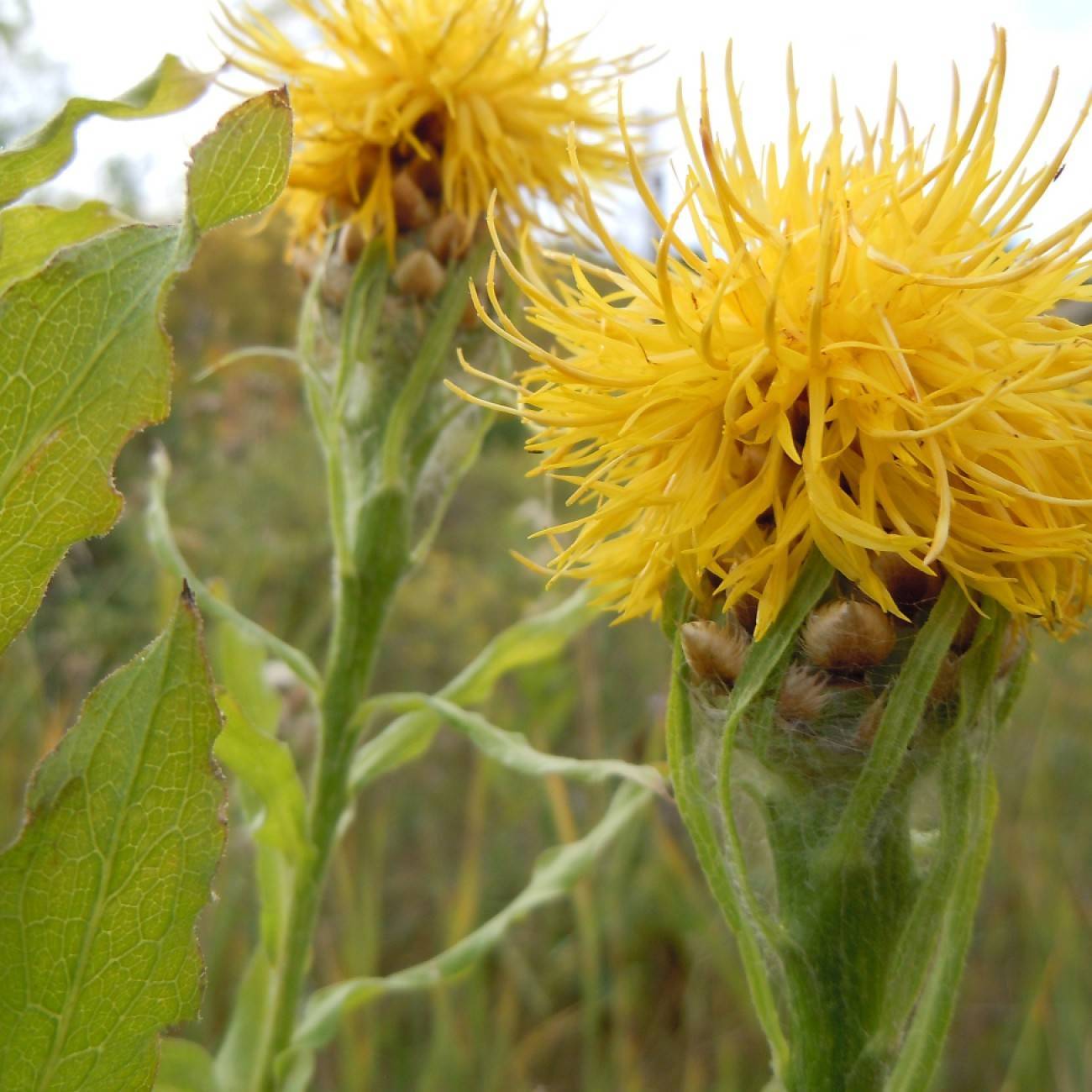 Big Head Starthistle (Centaurea macrocephala Mussin-Puschkin ex Willdenow) is a perennial, herbaceous plant in the family Asteraceae. It has attractive composite flower heads that can form dense clusters, and is native to eastern Mediterranean regions. Its leaves are divided into lobes and covered in thick hairs, and its large yellow flower heads can measure up to 6 cm in diameter. Its seeds can remain viable in the soil for up to 20 years and the plant can spread rapidly in disturbed areas. Grazing by animals helps keep this species in check.