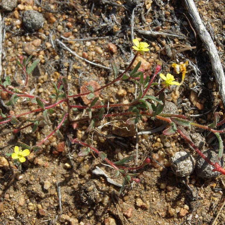 Dwarf Contorted Suncup (Camissonia contorta) is a resilient plant native to the desert and coastal regions of the United States. Its bi-color leaves are deep green on top and pale yellow underneath, while its star-shaped blooms feature a bright yellow interior and reddish gold petals. An individual can reach up to 6 inches in height, making them ideal for small gardens. Despite their low water requirements, they tolerate occasional heavy rain. They can tolerate temperatures between 25-90 degrees Fahrenheit and will become dormant if temperatures drop too low. With proper care and maintenance, Dwarf Contorted Suncup can bring charm and texture to any landscape.