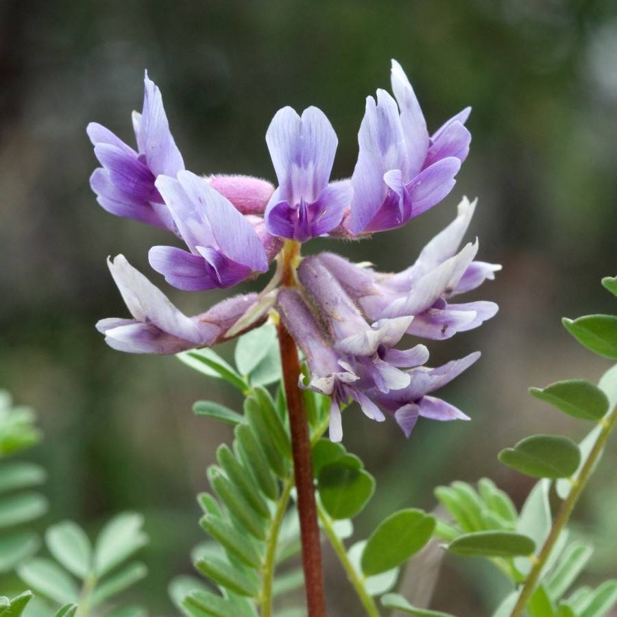 Fernald's Milk Vetch (Astragalus robbinsii var. fernaldii) is a hardy, shrubby perennial native to the western United States. It has light pink to purple flowers that appear in clusters. It produces clusters of 18-25 flattened pods that contain 2-5 yellow-green seeds. The foliage is a gray-green and can reach two feet in height, with deep taproots. Its blooms provide nectar for pollinators such as bumblebees. As drought-tolerant, Fernald's Milk Vetch is often used in xeriscapes and wildlife gardens.