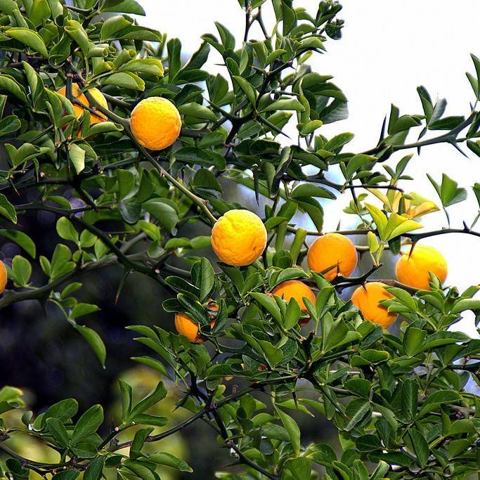 Hardy Orange (Poncirus trifoliata 'Monstrosa') is a large evergreen shrub native to China and Japan. It grows to 4-6m tall with thorns on its arching branches. The fragrant white flowers bloom in late winter. Its fruits are sweet, yellow-orange, and full of juice. It is hardy and drought tolerant, making it suitable for gardens in temperate climates. Hardy Orange has good resistance to cold temperatures and can tolerate temperatures down to -20 degrees Celsius. Its large size and thorns make it a great option for privacy and protection from animals. Its bright fruits can also be used in cooking.