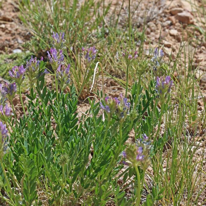 Laxmann's Milk Vetch (Astragalus laxmannii var. robustior) is an annual legume native to mountainous parts of Siberia and Central Asia. It is an erect herbaceous plant, ranging from 30-80 cm tall, with clusters of yellow flowers. The stems and leaves are covered in stiff hairs. It is drought-tolerant and hardy in cold temperatures. Its robust roots help the plant to survive periodic fires. It is an important source of nutrition for domestic and wild animals, and its roots have been used medicinally in traditional Chinese medicine for a variety of treatments, including arthritis and rheumatism.
