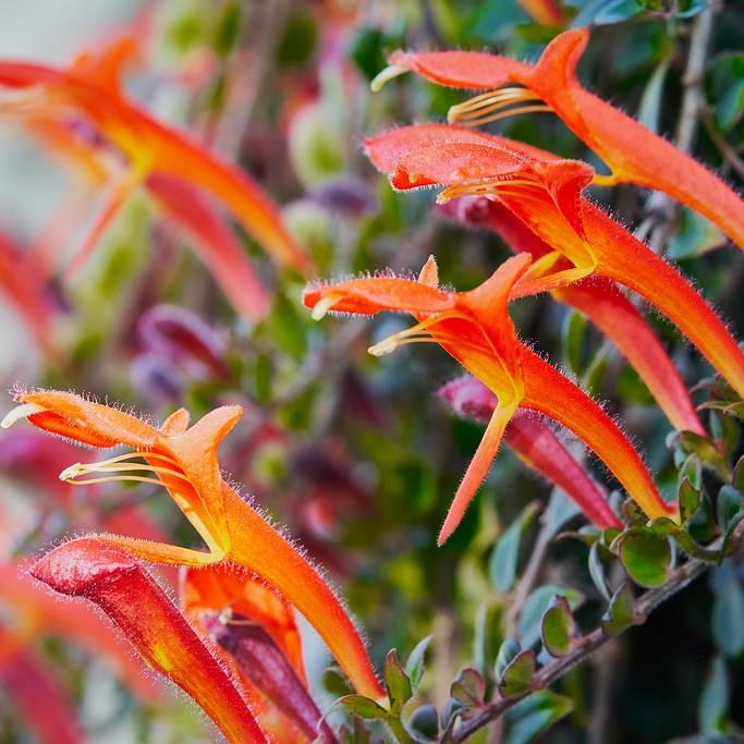 Columnea (Columnea microcalyx) is an amazing plant species due to its attractive and unique foliage. The leaves are dark green and thick, with wavy edges and a velvety texture. The bright red flowers with yellow and orange accents only further add to the charm of the plant. It is native to Central America, and its ability to thrive in full sun or dull light makes it ideal for both indoor and outdoor settings. It prefers a well-draining soil and thrives in dry climates. Columnea microcalyx is an easy to care for plant that's sure to bring a vibrant look to any home or garden.