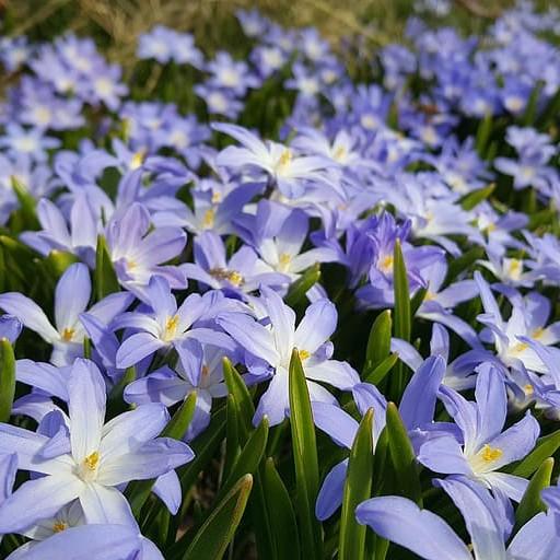 Glory of the snow (Chionodoxa forbesii 'Blue Giant') thrives in full sun to partial shade. It should be planted in an area that receives at least 6 hours of direct sunlight throughout the day to achieve optimal results and flowering. During spring months, when the days are longer, more sunlight is beneficial. In summer, it is important to provide partial shade in the afternoons to avoid wilting due to the heat. In the colder months, it is important to ensure that the sun does not hit the plant for too long so as to not cause cold damage or frosting.