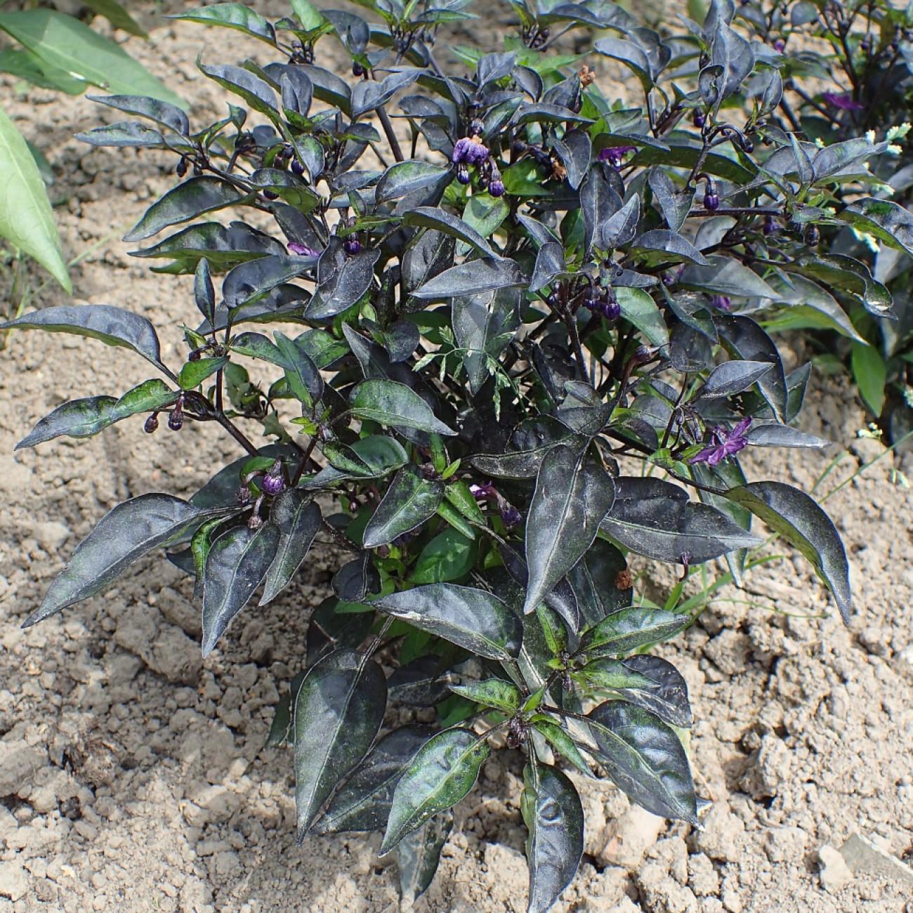 Ornamental pepper (Capsicum annuum 'Purple Flash') is an amazing plant species with eye-catching purple foliage and stems. In addition to it's beautiful foliage, it produces small purple fruit with a brilliant lime green interior. Popular among gardeners for its ornamental beauty, it is easy to care for and drought tolerant. It grows best in light, well-drained soils and will thrive in full sun or partial shade. Ornamental pepper is a great choice for adding dramatic color to gardens and containers and can even be used in cooking for a unique flavor.