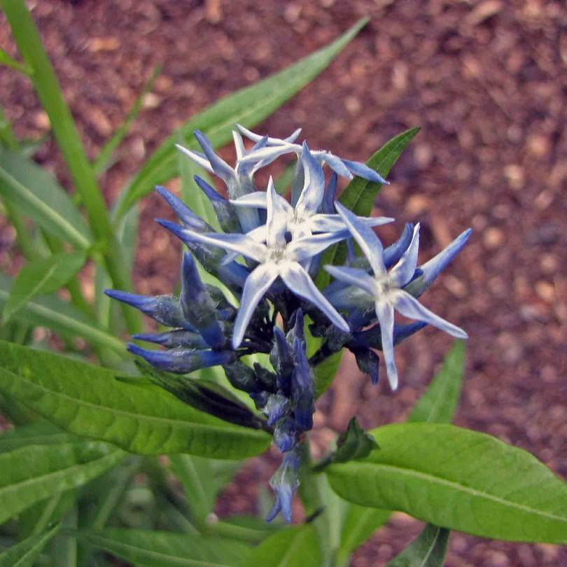 Shining blue star (Amsonia illustris) should be watered once every 10-14 days. This should be done if the soil has dried out significantly, and not more often than necessary. During the summer, when the temperatures are hotter and the sun is out more often, a slight increase in frequency may be necessary. A general guideline to follow is to water when the top inch of soil is dry to the touch.