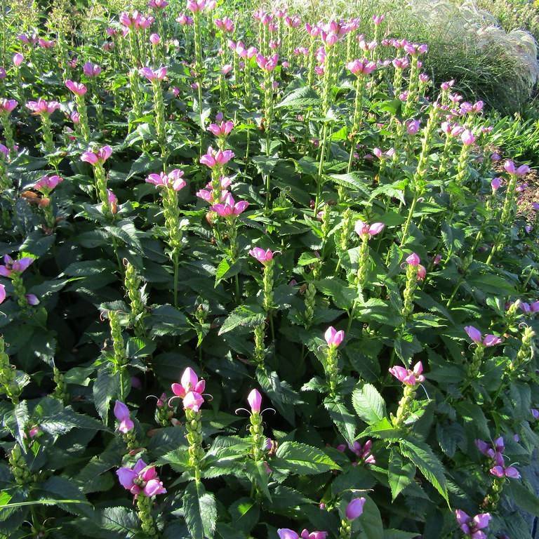 Turtlehead (Chelone obliqua) needs full sun or partial shade to grow successfully. In shadier areas, the plant may not reach its full height of up to 4 feet. In full sun, the plant will thrive and will produce more blooms. For best blooming results, it's best to give turtlehead 6 to 8 hours of full sun per day. Turtlehead is quite tolerant of drought and humidity, and it's ideal to keep the soil consistently moist.