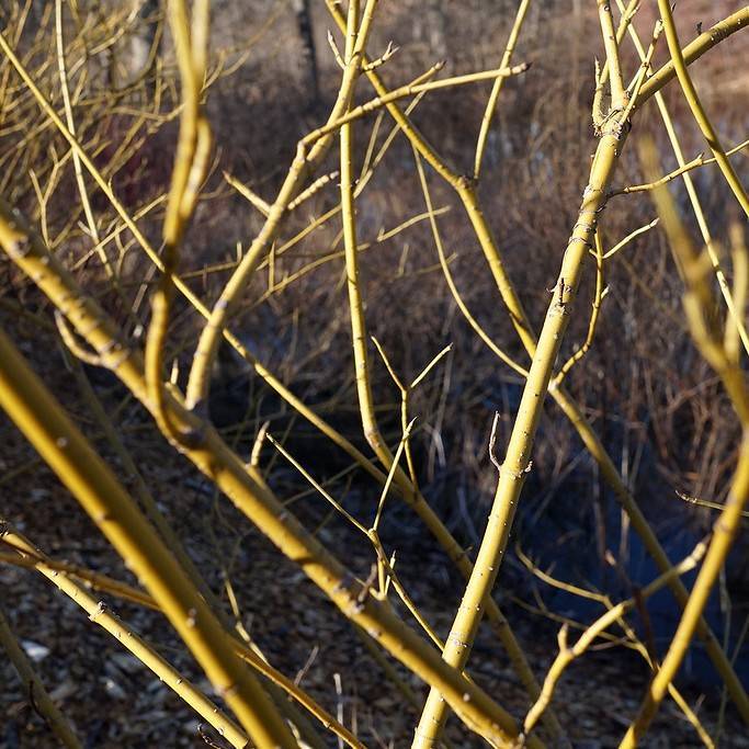 Yellowtwig dogwood (Cornus sericea 'Budd's Yellow') is an amazing ornamental shrub native to northern latitudes. Its green stems turn bright yellow in winter, providing year-round interest and beauty. It also produces white flowers and red berries in summer. This easy-to-grow shrub is very adaptable and does well in many kinds of soil, and prefers full sun or partial shade. Its stunning bright yellow color in winter is the perfect contrast to a snowy winter landscape, and makes it a very popular choice for winter gardens. Not only is it beautiful, it’s also hardy, resisting diseases and pests, making it a very low-maintenance landscape addition. With its multiple seasons of interest, Yellowtwig dogwood is an amazing choice for any garden.